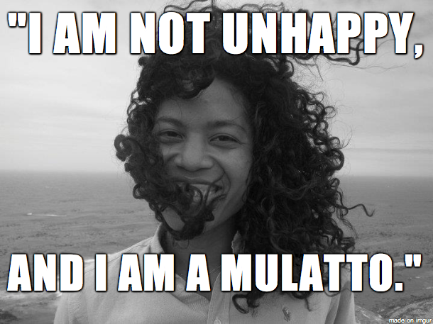 Beautiful 🙂 The idea of the tragic mulatto… while sometimes it’s accurate and comforting, isn’t totally helpful. How do you feel about using the word mulatto to describe yourself (if you’re half black half white)?